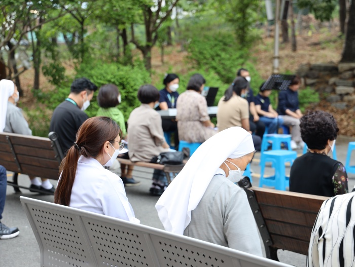 새로운 도약, Together jumping 2022! 칠곡가톨릭병원입니다. 지난 5월 30일에는 5월 성모성월을 맞이하여 칠곡가톨릭병원 가톨릭 신자모임인 '베아뚜스' 회원들과 함께 성모의 밤 행사를 열었습니다. 은혜로운 성모님께 베아뚜스에서 정성스레 준비한 꽃바구니와 그동안 신우회원들이 직접 작성한 은총성경쓰기를 함께 봉헌하였고, 특히 기도지향으로는 우크라이나 전쟁으로 고통받는 이들을 생각하며 뜻 깊은 묵주 기도와 함께 봉헌하였습니다. 행사 후에는 다과상을 마련하여 원장 신부님과 신우회원 분들이 함께 이야기를 하며 다과를 나누는 즐거운 시간도 가졌습니다. 바쁜 일상 속에서도 성모님께 의지하며 함께 기도하고, 노래하는 행복한 저녁이었습니다. :D |