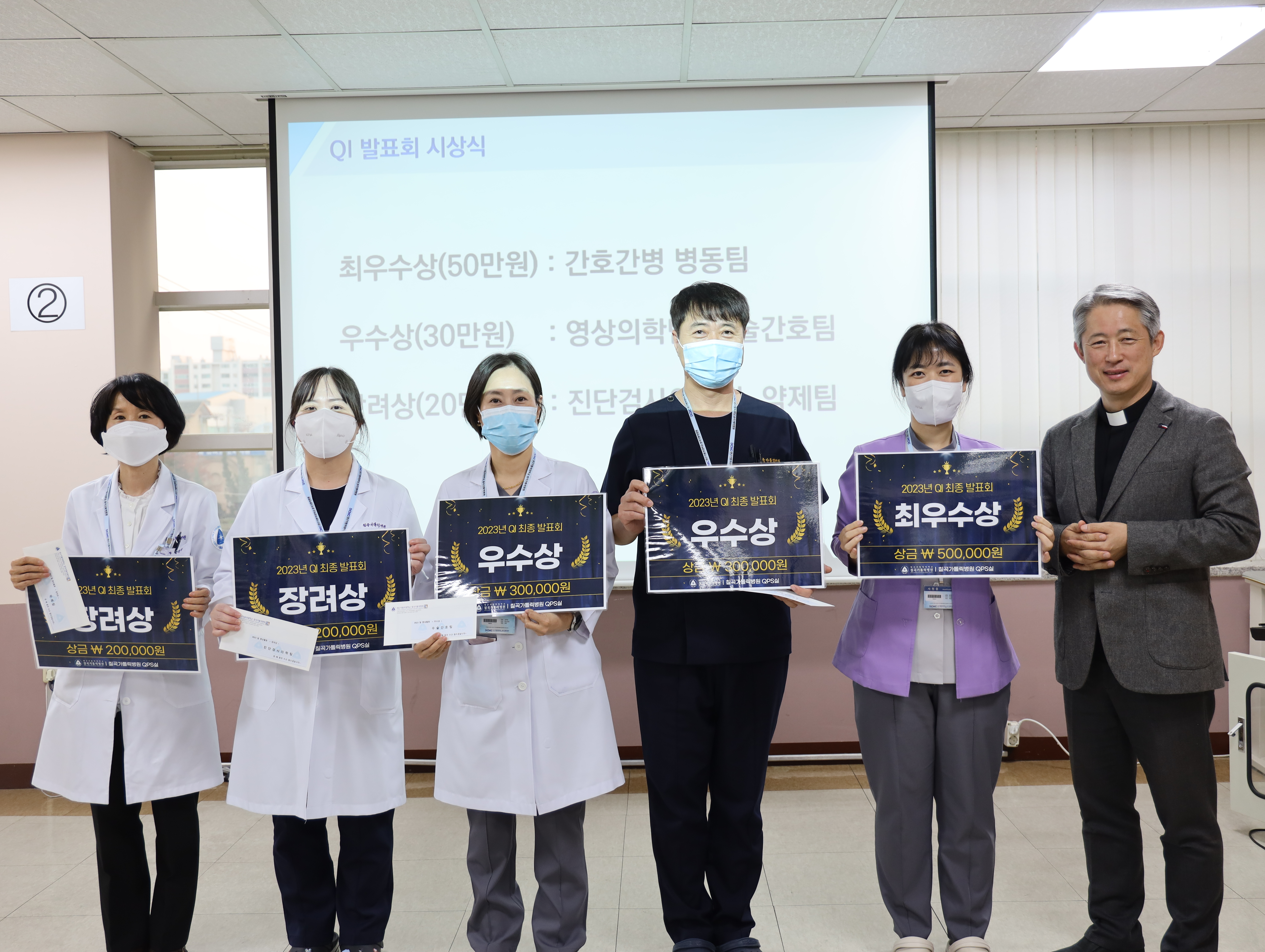 ![]() ![]() ![]() ![]() Change me! 솔선수범하는 칠곡가톨릭병원입니다! 지난 11월 1일 월요일 오후에 한 달의 시작을 알리는 11월 직원 전체 월례회를 시행하였습니다. 이번 11월 월례회는 ▶10월 신규 직원 소개 ▶10월 칭찬 릴레이 직원 소개 ▶QI발표회 시상식 ▶10월 의료 실적 공유 ▶진료협력센터 부서 소개 ▶각 부서 공지사항 전달 ▶원장님 총평 순으로 진행하였습니다. 10월 신규 직원을 소개하며 새로운 식구가 된 선생님들께 격려를 보내는 시간을 가졌습니다! 또한 지난 10월에 시행한 QI 최종발표회 시상식이 있었습니다! 바쁜 업무 속에서도 부서의 발전을 위해 최선을 다해주신 참가부서 선생님들께 다시 한번 감사의 인사를 드립니다! 이번 10월 직원 월례회에서는 이성숙 팀장님의 진료협력센터 부서소개를 발표 해주셨습니다. 아직까지 진료협력센터에 대해 궁금해 하시는 분들이 많아 어떤 일을 하는지, 의뢰 및 이송은 어떤 시스템으로 운영하는지 자세히 설명해주셔서 너무 의미 있는 시간이었습니다! 이제 칠곡가톨릭병원의 진료협력센터를 모르시는 직원들은 없을 거라고 생각이 됩니다. 마지막으로 병원장님께서는 10월 한 달도 고생 많았다며 격려를 아끼지 않으셨습니다. 점점 발전해나가는 병원의 실적이나 지표를 보면 직원들의 노고가 있었기에 가능한 일이었다며 격려를 아끼지 않았습니다! 앞으로 더 커질 칠곡가톨릭병원이 기대가 된다는 말씀으로 11월 직원 월례회를 마쳤습니다. 퇴근 시간 전 바쁜 업무에도 불구하고 병원과의 소통을 위해 월례회에 참여해주신 모든 분들께 감사의 인사를 드리며, 11월에도 환자중심의 병원으로 거듭날 수 있도록 구성원 모두가 솔선수범 하겠습니다! ◎ 10월 신규 직원 : 5병동 김소영 선생님 ◎ 10월 칭찬릴레이 직원 : 진료협력센터 이성숙 팀장님, 원무팀 안수정 선생님 ◎ QI 최종 발표회 시상 : 최우수-간호간병통합서비스병동 우수상-영상의학팀, 수술간호팀 장려상 - 진단검사의학팀, 약제팀 |