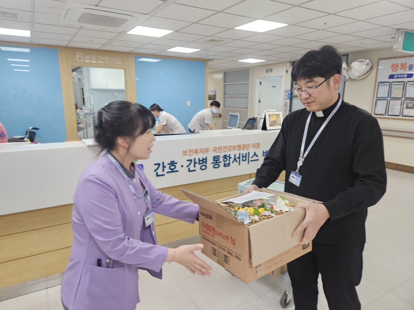 We change! 공감과 소통하는 칠곡가톨릭병원입니다. 오늘 부활의 기쁨을 함께 나누기 위해서 칠곡가톨릭병원에 입원해 계시는 모든 환우분들과 전 직원들에게 부활 계란 나눔 행사를 진행하였습니다. 신부님, 수녀님과 신우회원들이 한 땀 한 땀 손수 만든 부활 선물에 칠곡가톨릭병원 공동체 모두가 함께 웃고 감사해하는 뜻깊은 시간이었습니다 부활의 희망과 기쁨이 지역민들과 함께 하길 기도하겠습니다. 주 예수 그리스도의 부활을 진심으로 축하합니다. "십자가에 못 박히셨다가 사흘 만에 다시 살아나셔야 한다."(루카 24,7) ![]() ![]() ![]() ![]() ![]() ![]() ![]() ![]() ![]() ![]() |