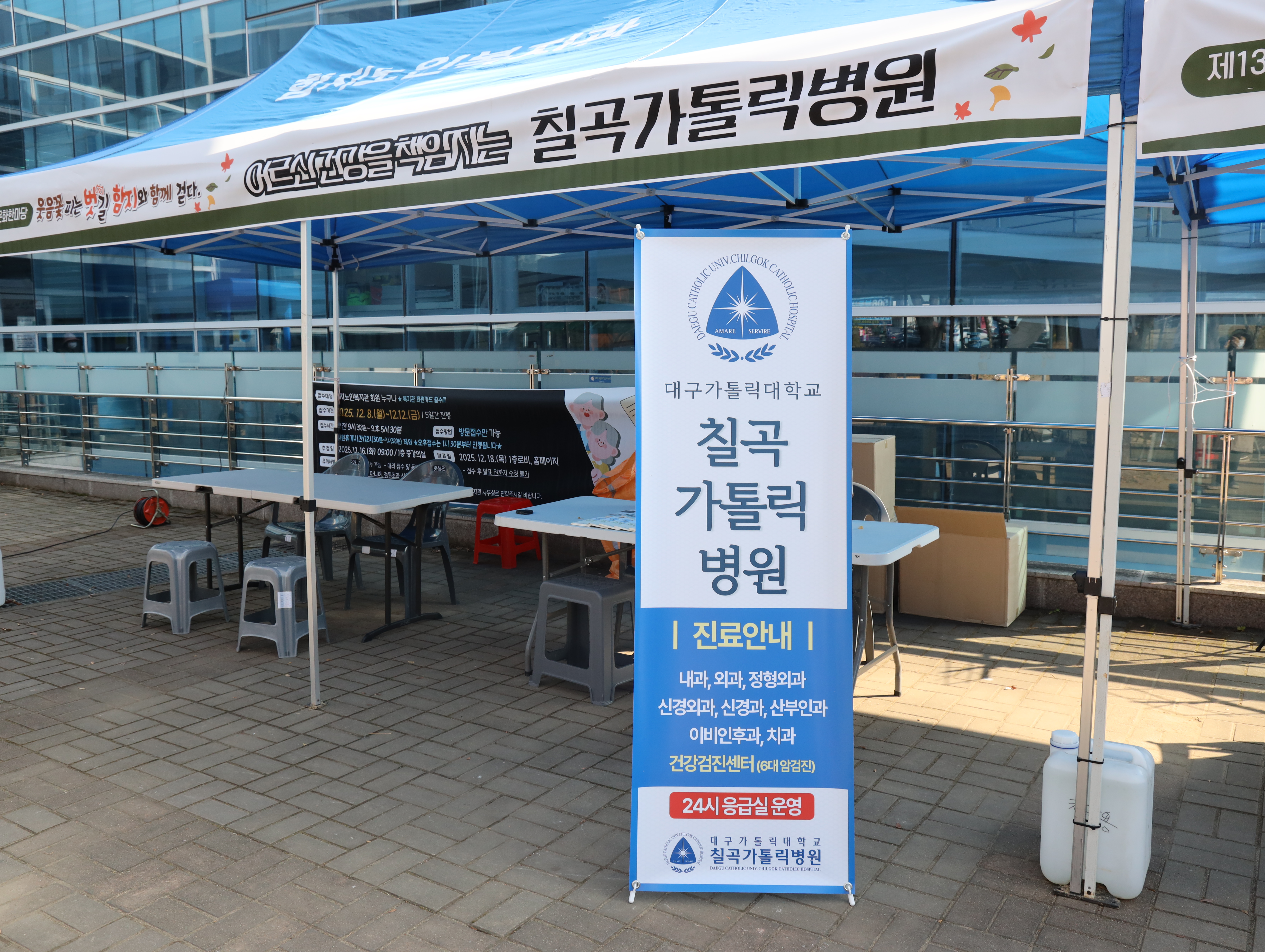 We change, 공감과 소통하는 칠곡가톨릭병원입니다! 지난 11월 26일 대구 북구에 있는 함지노인복지관에서 개최한 문화한마당에 다녀왔습니다! 지역 어르신들을 대상으로 복지센터와 여러 기관들이 모여 홍보하고 다양한 체험을 할 수 있는 즐거운 공간이 되었습니다 :) 칠곡가톨릭병원도 작은 부스를 마련하여 진료와 건강검진센터에 대해 알려드렸습니다! 그리고 저희 부스에 찾아주신 분들을 위해 생활에서 유용하게 쓰실 수 있는 각티슈와 리플렛을 전달 드리며 어르신들의 활기찬 일상을 응원하였습니다. 부스를 마련해주신 함지 노인복지관과 환영해주신 어르신들께 감사의 인사를 드리며, 어르신들의 건강을 위한 건강강좌와 다양한 캠페인 활동을 통해 지역 주치의 역할을 책임지겠습니다 ^-^ |