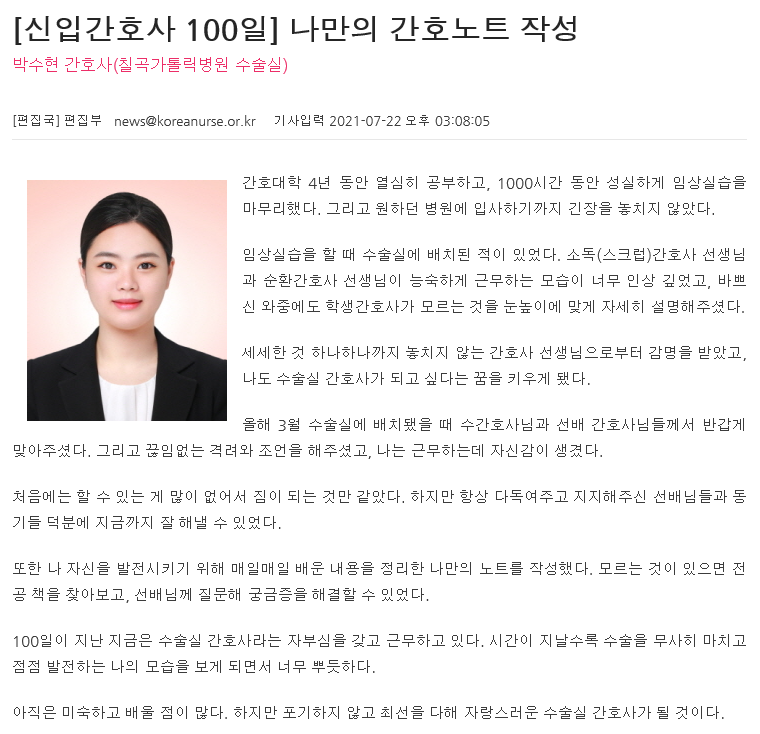 (간호사신문) http://www.nursenews.co.kr/main/ArticleDetailView.asp?sSection=63&idx=27856